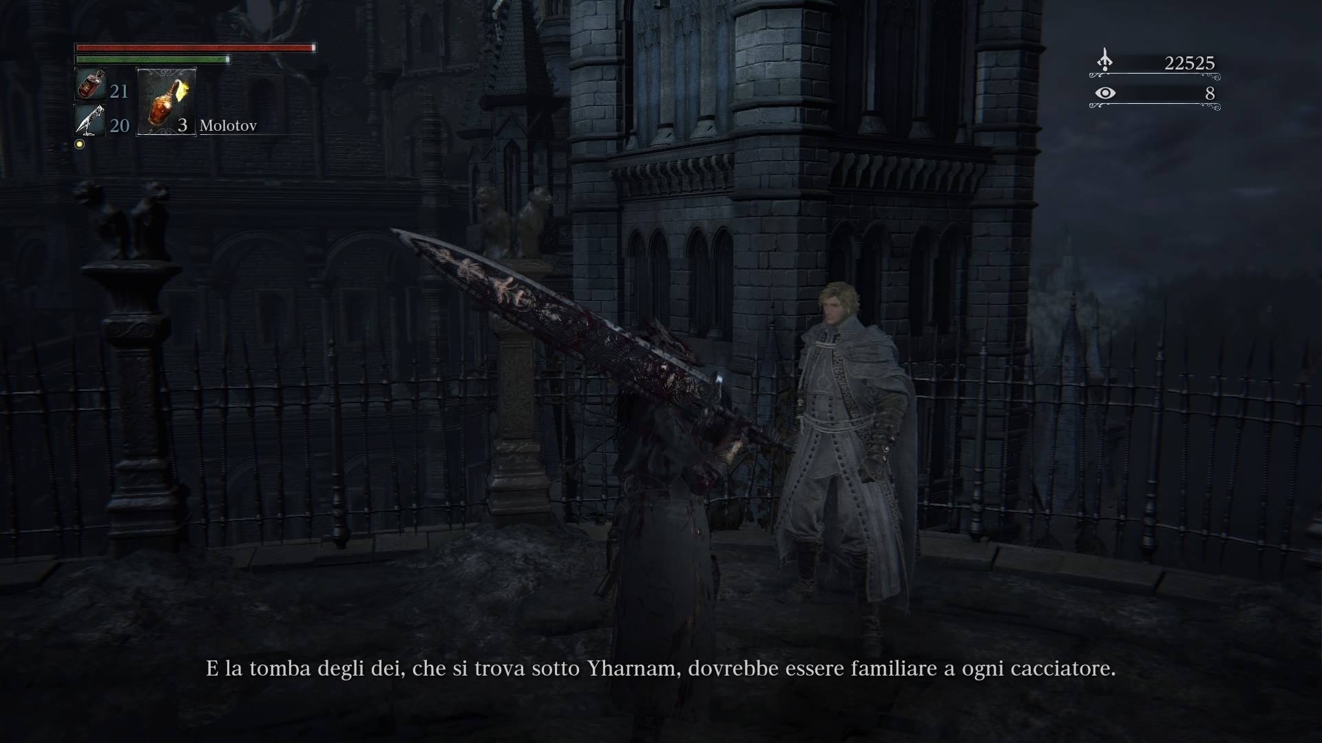 Il gioco, in stile gotico, è ambientato in un'antica città chiamata Yharnam, sede della famosa Chiesa della Cura e detentrice del Sangue Curativo, preziosa sostanza in grado di curare ogni male. Questa notte, tra i molti pellegrini che si recano in città, anche il protagonista giungerà a Yharnam in cerca del Sangue Curativo, e sottoscrivendo un contratto medico riuscirà ad ottenerlo. Ben presto però, scoprirà di far parte della famosa stirpe dei cacciatori, gli esseri che durante la notte della caccia sono obbligati a ripulire Yharnam delle sue mostruosità infette. In suo aiuto, un'iscrizione: "cerca il sanguesmunto per trascendere la caccia". La sua casa, il sogno del cacciatore; la sua missione, scoprire gli oscuri segreti di una città in rovina, in una notte di caccia molto diversa dalle passate.