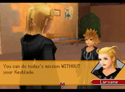Il gioco comincia con un'introduzione ai XIII, un uomo incappucciato vestito di nero che fa di Roxas un membro dell'Organizzazione. Il problema è che Roxas non ricorda nulla fino ad allora e non parla. Con il passare dei giorni comincia a legarsi ad Axel, che gli insegna come svolgere il "lavoro", con il quale ha cominciato a mangiare un gelato salmastro sulla torre dell'orologio di Crepuscopoli a fine giornata. Ai XIII si aggiunge un membro XIV: Xion, che all'inizio, come Roxas, non parla e si presenta all'inizio incappucciata e stranamente, come lui, sa usare il Keyblade. Con l'andare del tempo i tre diventano "amici per la pelle", parole grosse per dei Nessuno, e continuano a mangiare i gelati in cima alla Torre. Roxas, il protagonista, comincia pian piano ad avere dei "flash" dei ricordi di Sora, durante le notti e le missioni che l'Organizzazione gli affida: deve raccogliere Cuori sconfiggendo gli Heartless, per arrivare così a Kingdom Hearts e avere così un cuore, scopo finale sia di Roxas, che Xion e apparentemente di Axel. Anche Xion ha questa capacità: entrambi vengono definiti dei "Nessuno speciali", frase che fa riflettere entrambi. Axel viene mandato da Saix al Castello dell'Oblio e sta via per qualche giorno, mentre il legame tra Roxas e Xion si rafforza. Dopo giorni che sembrano eternità Axel ritorna e si scopre che un membro dell'Organizzazione è stato distrutto da un impostore.