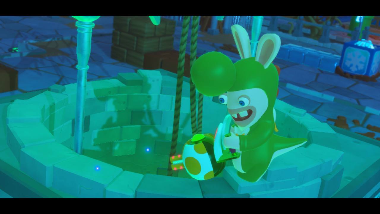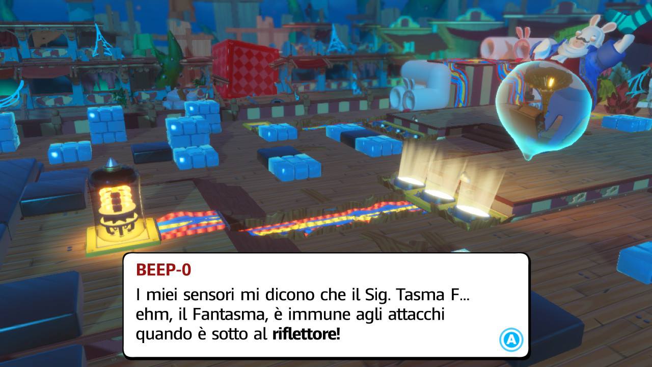 Una giovane ragazza, grande fan della serie di Mario ed esperta inventrice, lavora nella sua stanza insieme alla sua IA assistente Beep-0 per completare la sua ultima creazione chiamata casco Combinatutto. Tuttavia, il casco ha un problema di surriscaldamento quando fonde un fiore con una lampada. Dopo essere uscita per una pausa pranzo, la sua stanza è improvvisamente invasa da un gruppo di Rabbids attraverso la loro Macchina del tempo lavatrice, che iniziano a esplorare e causare il caos con la sua roba. Uno dei Rabbids incuriosito dal Combinatutto lo indossa, iniziando a fondere i suoi compagni con vari oggetti, tramutandoliu in nuove versioni. Ma nel divertirsi con il casco, il Rabbid colpisce la macchina del tempo, risucchiando tutti i Rabbids, Beep-0, e le cose della ragazza in un vortice dimensionale che trasporta il tutto nel Regno dei Funghi. Beep-0, giunto nella nuova dimensione, osserva che il Combinatutto si unisce con il Rabbids che lo indossa, dando vita a un piccolo Rabbid che unisce i suoi simili con altri oggetti prima di scomparire altrove. Mentre la Macchina del tempo lavatrice, ora gigantesca, sta per cadere su Beep-0 viene presto salvato da Mario che su consiglio dell'IA si unisce con Rabbid Peach e Rabbid Luigi al fine di rintracciare il Rabbid col Combinatutto; ad aiutarli c'è anche una misteriosa figura che invia messaggi di posta elettronica attraverso Beep-0.